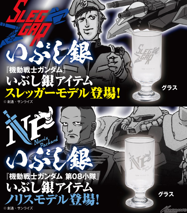 スレッガーはGファイター、ノリスはグフ・カスタムのイメージをワンポイントのデザインに落としこんだ、「グラス」「ベルト」「ボクサーパンツ」「バスタオル」の全4種を展開。