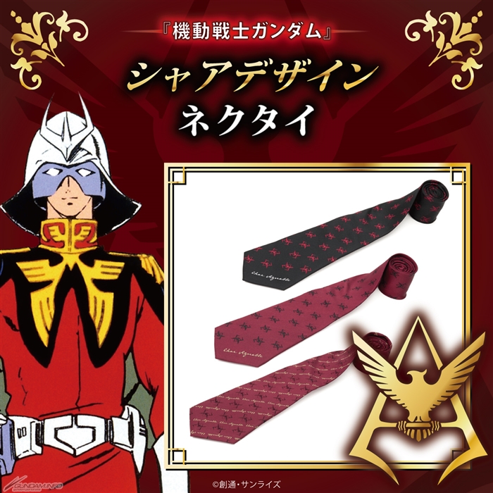 『機動戦士ガンダム』より、シャア・アズナブルをモチーフとしたネクタイが、レッド、ブラック、レッド&ゴールドの3カラーで登場。