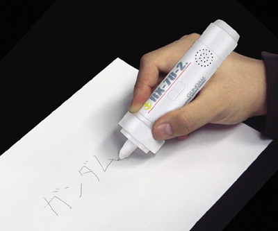 ▲こうしてペン先を押し付けると……。ギギギギギッとあの音が!
