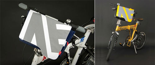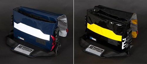 アナハイム・エレクトロニクス社のロゴマークや、“AE SPORTS”の布タグを使用することにより、自転車同様、アナハイム・エレクトロニクス社が販売しているブランドバッグのように仕上がっています。