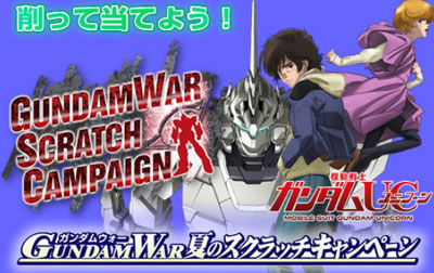 ガンダムウォー関連商品を1,000円分お買い上げごとに1回、スクラッチくじにチャレンジできます。 くじを削って当たりが出たら、特製プロモーションカードをプレゼント。