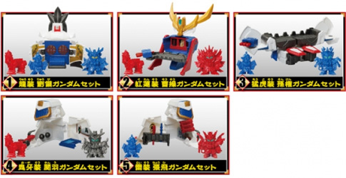 全5種を集めることで全高約195mmの巨大な「龍装 劉備ガンダム」が完成!