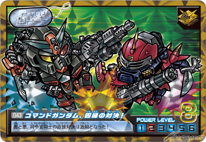 ブコン | OK!! 基本的にはノーマルワールドの延長線上にあるお話です。 最初に平和ボケしていたSDのファーストガンダム達を、 コマンドガンダムが来たる脅威に向けて 修正していくところから物語は始まります。 それから近未来サイバーパンク風になったり宇宙いったり 最終的には銀河一武道会になっちゃいます! |