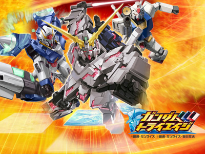「ユニコーンガンダム」、「ダブルオーガンダム」、「ガンダム」の3体が描かれた1枚!