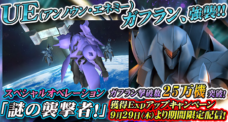 スペシャルオペレーション「謎の襲撃者!」にて、ガフラン25万機撃破達成!「獲得Exp1.3倍キャンペーン」実施中!