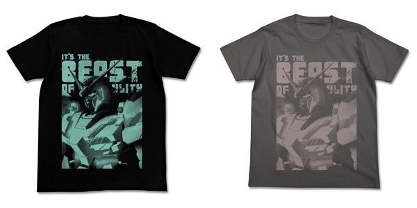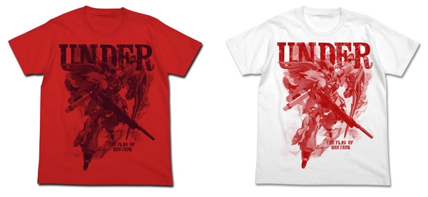「可能性の獣Tシャツ」は“それは可能性の獣”の英訳文を、「シナンジュグラフィックTシャツ」は、“ネオジオンの旗のもとに”の英訳文をそれぞれ「ユニコーンガンダム」と「シナンジュ」とともにハードにプリントした印象的なアイテム。