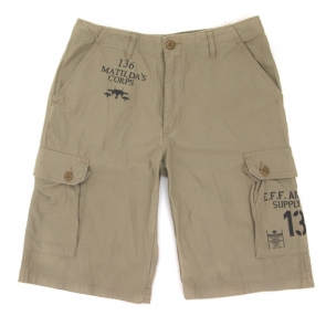 軍隊の貨物船で働く作業員たちが愛用していたというカーゴパンツに、マチルダ隊(第136連隊)をイメージしたデザインや「ミデア」のシルエットなどを、フロントとサイドポケットにプリント。