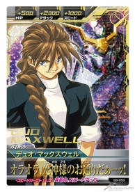 「BUILD MS 3弾」では、パーフェクトレアとして『ガンダムビルドファイターズ』より、MSカード「ビルドストライクガンダム」と「ガンダムX魔王」、パイロットカード「レイジ」がラインナップ。さらに、『新機動戦記ガンダムW』より「ガンダムデスサイズ」と、そのパイロット「デュオ・マックスウェル」が収録される。