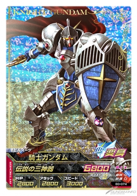 シリーズ初のシークレットカード「B3-074 騎士ガンダム」は、アビリティ「変身」を持ち、必殺技「伝説の三神器」を備えたスペシャルなカードとなっている。