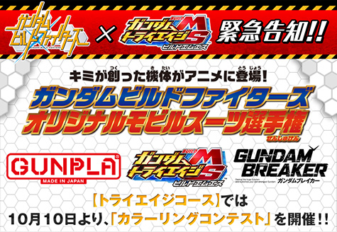 好評放送中のTVシリーズ最新作『ガンダムビルドファイターズ』と連動したコンテスト「ガンダムビルドファイターズ オリジナルモビルスーツ選手権」の「トライエイジコース」のエントリー受付が、本日10月10日(木)よりスタートした。