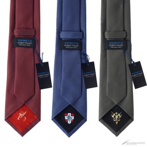 ガンダムの世界観を取り入れたメンズアパレルショップ「STRICT-G」では、ネクタイメーカー「AINEXX」のオリジナルブランド「ロバート・フレイザー」とコラボレーションしたネクタイ14種が、明日2月8日(土)より順次発売される。価格は各7,800円(税抜)。