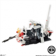 また、本アイテムオリジナルのジョイント機構が搭載され、パーツの差し替えで人型のMS形態にも換装可能。取り外した大型パーツとMS形態の機体は、台座を用いて同時にディスプレイすることができる。