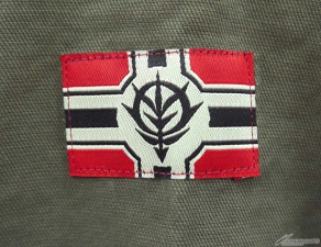特殊な織り機を使って再現したレプリカの「モールスキン生地」は着込むほどに味わい深く、頑強な縫製、脇部分の通気穴、ボタンやジッパーを隠す比翼仕立てと、ミリタリーウェアならではのディテールにも徹底的にこだわって作られているほか、左右の両肩にはジオン公国軍旗の織りネームが付くなど「ガンダム」の世界観も楽しめる。