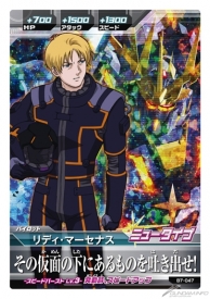 マスターレアには、最終章となるepisode 7「虹の彼方に」のイベント上映・先行有料配信が実施中の『機動戦士ガンダムUC』や、『ガンダムビルドファイターズ』のMS・パイロットを中心とした強力なカードが多数ラインナップされている。