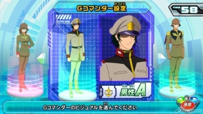 プレイヤーは、2体ずつ用意された男性キャラと女性キャラの中から使用する「Gコマンダー」を選択することとなる。