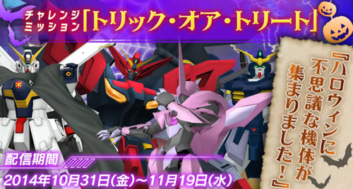 ミッションでは、ハロウィンのシーズンにちなんだ不思議な機体として「ガンダムヴァサーゴ」、「ガンダムデスサイズ」、「フォーン・ファルシア」、「クロスボーン・ガンダムX1」の4機が襲来。