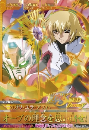 今回キャンペーンカードとして収録されるのは、『機動戦士ガンダムSEED DESTINY』に登場する「シン・アスカ」、「キラ・ヤマト」、「アスラン・ザラ」、「カガリ・ユラ・アスハ」の全4種。