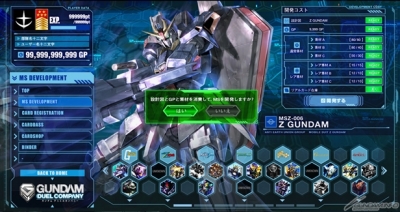 新モード「MS開発」とは、ゲーム内通貨「GP」と、ゲーム内で獲得できるようになる「設計図」と「素材」を開発会社へ投資することで、限定MSを開発できるというもの。開発したカードはデジタルカードとしてだけでなく、カードダスダイレクトでリアルカードとして入手することもできる。