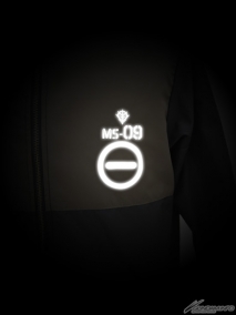 ドムの頭部をモチーフとしたフードに加え、胸のデザインはドムの「拡散ビーム砲」をイメージしたリフレクター仕様で、カメラのフラッシュや車のライトなどに反射して光る。