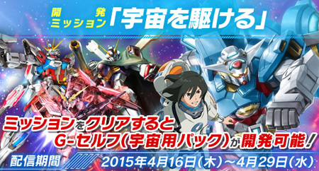 開発ミッション「宇宙を駆ける」では、宇宙用パックを装備した「G-セルフ」と、「クロスボーンガンダムX1」、「ユニコーンガンダム(D)」、「スタービルドストライクガンダム」が襲来。
