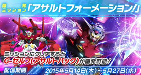 開発ミッション「アサルトフォーメーション」では、アサルトパックを装備した「G-セルフ」に加え、「ガンダム試作3号機」、「フリーダムガンダム(ミーティア装備)」、「ネオ・ジオング」が襲来。