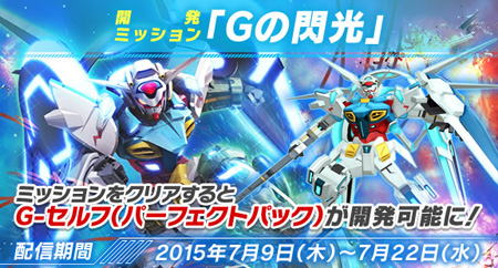 本ミッションでは、最新鋭のバックパック「パーフェクトパック」を装備した「G-セルフ」が出現。見事ミッションをクリアすることで、ビルドモビルスーツとして「G-セルフ(パーフェクトパック)」が開発可能になる。