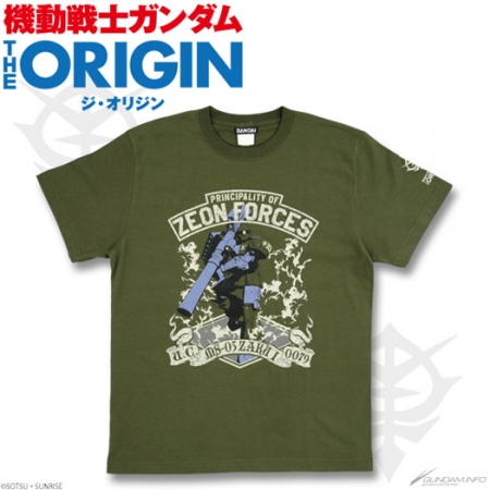 『機動戦士ガンダム THE ORIGIN』より、ジオン公国軍が量産化した史上初のMS「MS-05 ザクI」をプリントした柄と、ガイア、マッシュ、オルテガがルウム戦役で搭乗する「MS-06R-1A 高軌道型ザクII」がプリントされた柄のTシャツが登場。左袖口にはタイトルロゴに加え、それぞれジオンマーク、三連星マークがプリントされている。