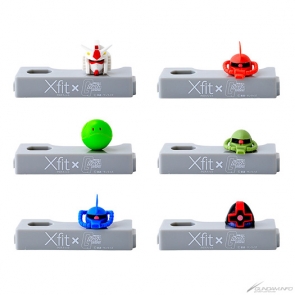 ▲Xfitホルダ-と替刃を立てかけて保管できる専用オリジナルホルダースタンドがもれなく付属。ガンダムパッケージは「RX-78-2ガンダム」と「ハロ」の2種類、シャア専用ザクパッケージは「MS-06Sシャア専用ザク」、「MS-06ザク」、「MS-07Bグフ」、「MS-09ドム」の4種類(計6種類)。