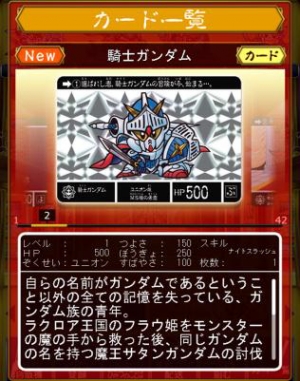 ▲「ナイトガンダム カードダスクエスト 第1弾 ラクロアの勇者」カード例