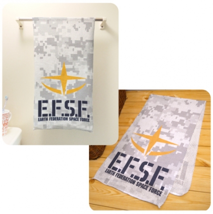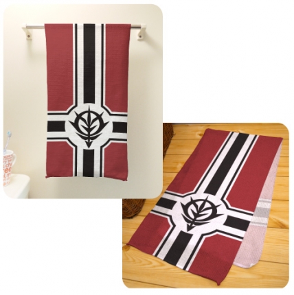「地球連邦軍」のマーク、「ジオン公国軍」の軍旗がそれぞれプリントされたウォッシュタオルが登場。かたすぎない肌触りの、きめ細かい泡が作れるお風呂用タオルとなっている。日常的に使うアイテムだからこそ、好きな作品のものを使いたい、という人に最適な一枚。