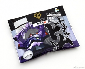 ジオン公国軍の重モビルスーツ「ドム」をかたどった「トリプル・ドムとうふ」は、パイロットであるガイア、マッシュ、オルテガの攻撃「ジェット・ストリーム・アタック」をモチーフにした3種のパッケージで展開。「マイルド」、「ビター」、「ミルク」と、それぞれ異なる3種類のチョコレート味の豆腐が充填される。