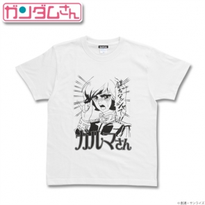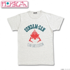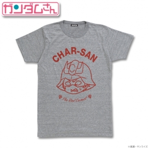 『ガンダムさん』より、3種のTシャツが登場。「CHAR'S CUSTOM柄」は彗星ヒヨコをカレッジイメージに落とし込んだカジュアルテイスト、「CHARSAN柄」は赤とツノと3倍をこよなく愛する、人呼んで“赤い彗星”シャアさんをシンプルにアレンジ、「ガルマさん柄」は「シャア、はかったな」でお馴染みのガルマさんがプリントされている。
