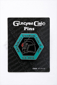 「ガンダムカフェ ピンズ」は、ガンダムカフェロゴがモチーフとなっている。