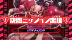 「決闘モード」とは、歴代のライバルたちが出現するモード。歴代ガンダム作品のストーリーを体験できる「ストーリーモード」をクリアすると超高難度ミッション「決闘ミッション」が一定確率で出現し、次プレイ時に挑戦可能となる。