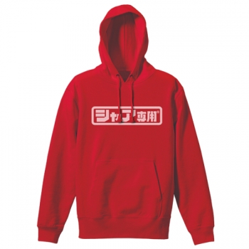「シャア専用プルオーバーパーカー」は、『機動戦士ガンダム』のシャア専用機のカスタムデカールをイメージしてデザインされている。少し厚手の生地で、アウターとしてはもちろん、冬場のインナーとしても活躍。これを着れば、シャア専用機になれることうけあいのアイテムとなっている。