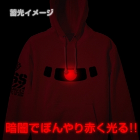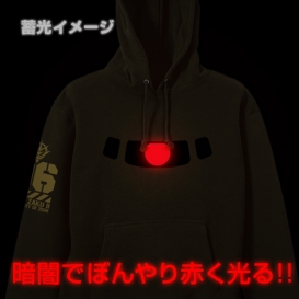 「ザクモノアイ蓄光パーカー」、「シャア専用ザクモノアイ蓄光パーカー」、「ドムモノアイ蓄光パーカー」は、『機動戦士ガンダム』に登場するMSのモノアイ部分のみがデザインされたアイテム。モノアイ部分は、明るいところで光を蓄えることにより暗い所で一定時間発光する蓄光プリントとなっており、暗闇でぼんやり光る。また、右肩にはジオンマークと型式番号などがプリントされている。