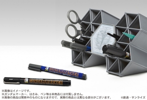 深さが異なり2段に分かれた合計12のフレームには、ペンや定規、はさみなどの文房具を差すことができるほか、ガンプラの塗装に欠かせないガンダムマーカーも収納可能。さらに、中心の宇宙世紀憲章を取り外すと収納スペースが隠されており、印鑑やUSBメモリなど普段は人の目に触れられたくないものや、クリップや付箋といったかさばるものも収納することができる。