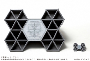 本アイテムは、『機動戦士ガンダムUC』で物語の重要な鍵を握る「ラプラスの箱」をモチーフにしたマルチスタンドで、宇宙世紀憲章が刻まれた石碑をはじめ、劇中の造形を約1/20スケールで忠実に再現。横幅約18cm、高さ約13cmという存在感がありながら、デスクに置きやすいサイズに設計されている。
