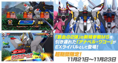 アナベル・ワコーは、「鉄血の2弾」の新規参戦MSを引き連れて登場する。次弾の機体と先行で戦うことができる貴重な機会となっているので、お見逃しなく。