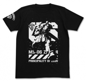 「サンダーボルト版ザクTシャツ」と「サンダーボルト版ザクショルダートート」は、『機動戦士ガンダム サンダーボルト』に登場する「量産型ザク」をプリントしたアイテム。サンダーボルト版独特のフォルムのザクの背景には、形式番号とジオン公国の英文がプリントされている。