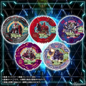 さらに、本アイテムでしか手に入らない限定モビルディスクが5枚付属する。ラインナップは「RX-78-1 プロトタイプガンダム」、「MSN-02 ジオング」、「MSN-06S シナンジュ」、「ZGMF-X20A ストライクフリーダムガンダム」、「ZGMF-X19A インフィニットジャスティスガンダム」。