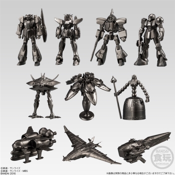 本弾にも、作品に登場するMSや巨大戦艦、宇宙要塞など16種を、クリアとガンメタの2カラー全32種収録。「Ζガンダム」や「ガ ンダムF91」といったMSはもちろん、「ビグ・ザム」、「ラフレシア」などの大型MA、「パブリク突撃艇」、「アウドムラ」、「イサリビ」などのメカも 登場。さらに、本シリーズ初の組み替えにより、3形態すべてを再現可能な「マンダラガンダム」もラインナップされている。
