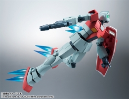 「ROBOT魂 RGM-79 ジム ver. A.N.I.M.E.」は、劇中再現を可能とする腹部の機構をジム専用に再検証、再設計。コックピットハッチを外すことで、10月発売予定の「ROBOT魂 シャア専用ズゴック ver. A.N.I.M.E.」と連結することができ、より一層劇中シーンを楽しむことができる。さらに、時限爆弾、被弾痕、キズ痕、機体ナンバーを再現できるシールが付属し、自分だけのオリジナル機体を楽しめるほか、発売中の「ROBOT魂 ガンダム ver. A.N.I.M.E.」付属の角度付バーニア2個と直線軸のバーニアが4個付属し、劇中同様のバーニア噴射で宇宙戦を連想させるポージングも可能となっている。