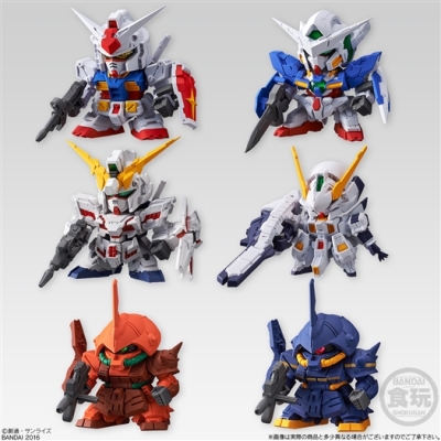 ラインナップは、ガンダムエクシア、ユニコーンガンダム(デストロイモード)、ガンダム、マラサイ、マラサイ(連邦軍仕様)、ガンダムTR-6の全6種。