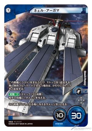戦艦カードは、ユニットカードやイベントカード、パイロットカードなどと並ぶ、新カテゴリのカード。貯めた「ストック」を支払うことで、戦艦ごとのユニークで強力な効果を発揮する。