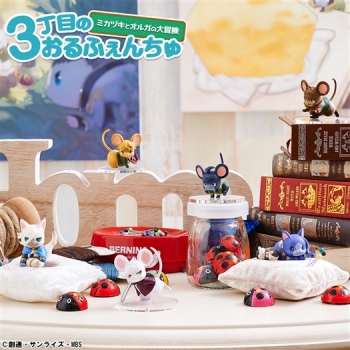 劇中でも「宇宙ネズミ」と呼ばれたようにそのまま「ネズミ」に大変身。主人公「三日月・オーガス」たち「おるふぇんちゅ」は躍動感あるポーズで立体化される。プリッとしたお尻がキュートなアイテム。なお、シノとユージンは今回が初登場となる。対するニャラルホルンは猫らしくリラックスしたお休みモード。