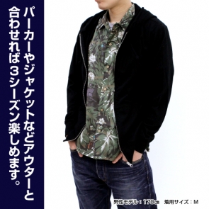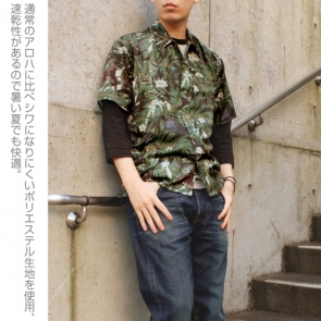 通常のアロハに比べシワになりにくいポリエステル生地を使用し、速乾性があり暑い夏でも快適に過ごすことができる。ジーンズやカーゴパンツなどとコーディネイトしやすいデザインで、パーカーやジャケットなどアウターと合わせれば3シーズン楽しむことができる。ボタンはココナッツ風の加工を施したウッドボタンを使用。