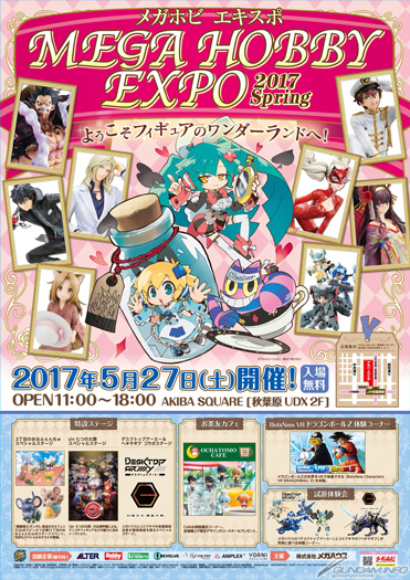 メガホビEXPO2017 Springは、メガハウスが主催するフィギュアなどのホビーアイテムの展示を中心としたイベント。詳細は こちらの記事をご覧ください。