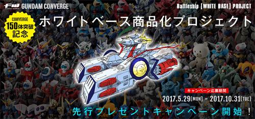 また、特設ページ更新にあわせてキャンペーンもスタート。キャンペーンは、対象アイテムのパッケージに付属するポイントを3,000ポイント集めて応募すると、抽選で150人に「FW GUNDAM CONVERGE WHITE BASE 劇場ポスターカラーイメージver.」が当たるというもの。カタパルトやMSデッキ部分にクリアパーツが使用され、CONVERGEを搭載した様子が外から見える仕様となっているので、この機会にぜひキャンペーンに応募してみよう。
