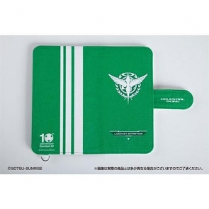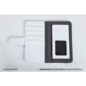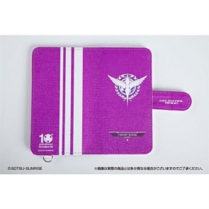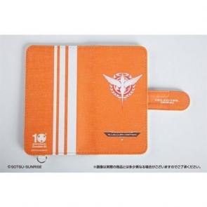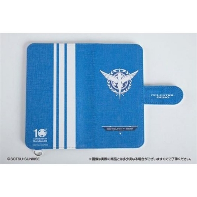 「汎用手帳型スマホケース」は、前面にソレスタルビーイングロゴ、背面に10周年ロゴが、各キャラクターのパーソナルカラーでデザインされている。